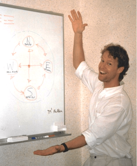 A few months later, the four of us met again in Sydney’s rustic lakeside vacation cabin, in central Florida, to design the “Pyramid Game”. We worked out how the process would go: teams built around the Compass directions, a sequence of activities built around the VISIS Method, the pyramid growing in the center of the room. Lee, who had worked many years as a professional engineer, figured out how to construct a physical pyramid model using simple wooden ice cream sticks (later we used tongue depressors, which are larger). We added a lot of sticky notes and pens, and some slides to explain the rules. Presto, we had a prototype.