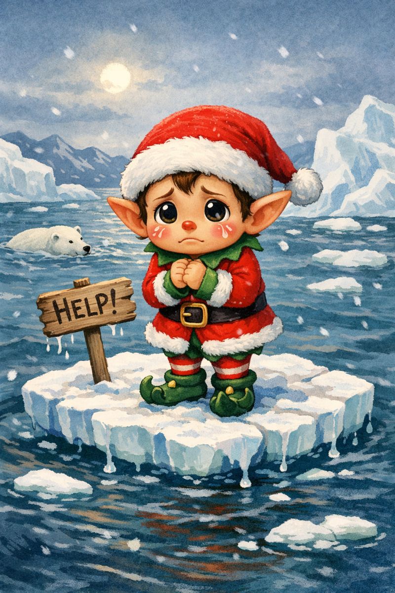 So, I’m very sorry about what’s happening to the North Pole, Santa. But frankly, that’s the least of our problems. We have a whole bunch of climate-related “tipping points” to worry about, scattered elsewhere on the planet. So it is well within your self-interest to make a grand gesture this year. Call attention to your plight. Maybe leave little cards under every tree, showing a photo of a cute elf, stranded on the melting sea ice.