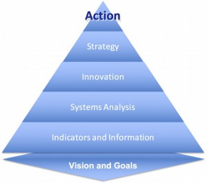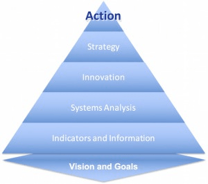 VISIS stands for Vision > Indicators > Systems > Innovation > Strategy — five critical steps in planning for sustainable development.